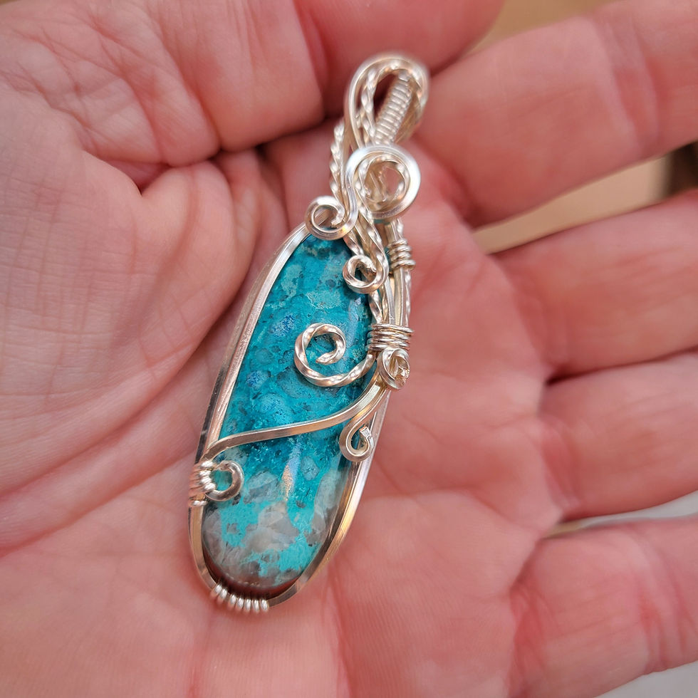 Chrysocolla in Quartz Silver Coated Solid Copper Pendant